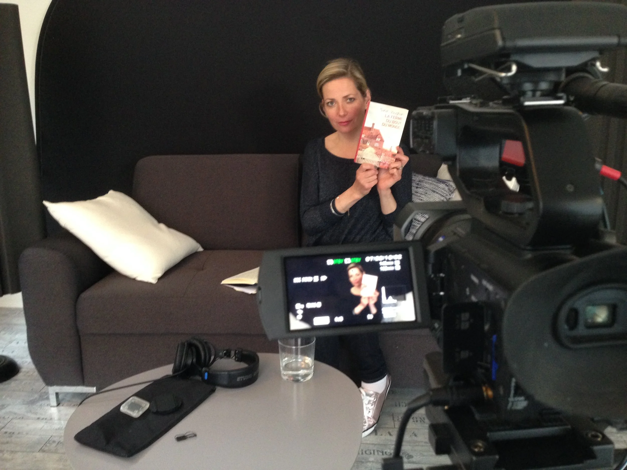 Being filmed discussing La Ferme du Bout du Monde.