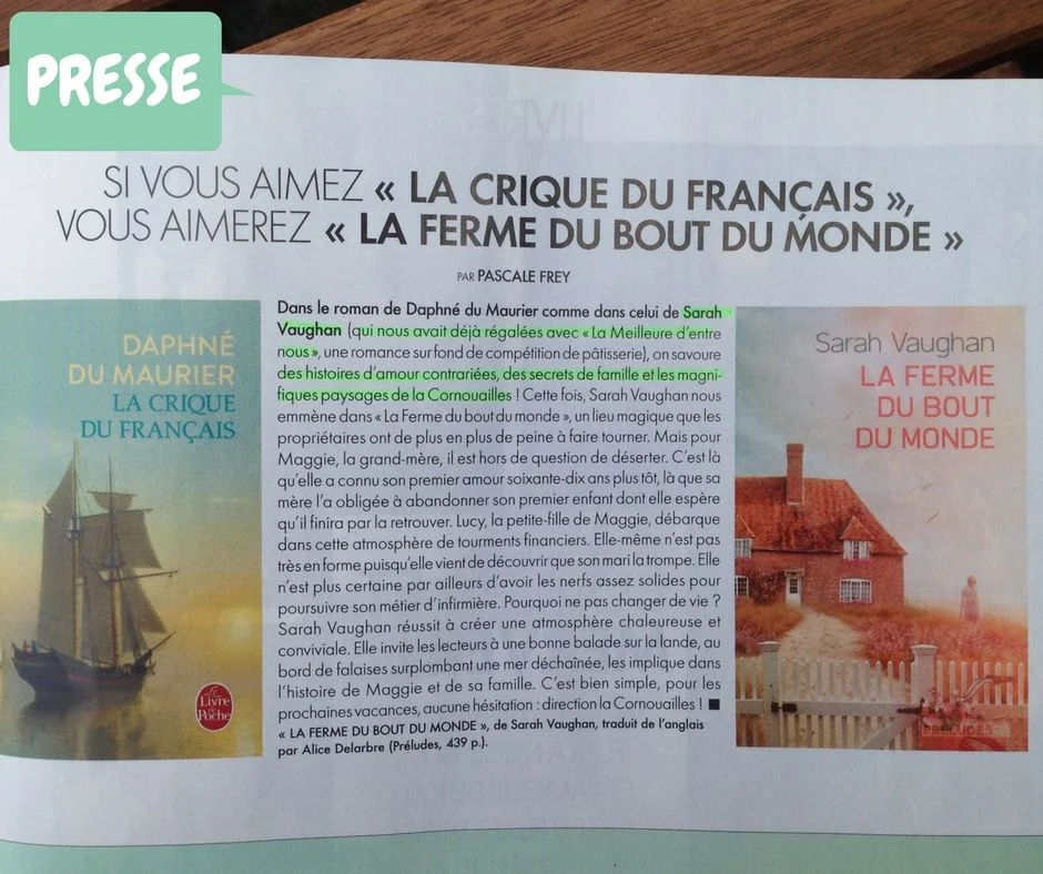 It's fair to say that, while The Farm at the Edge of the World has had the most beautiful reviews in the UK it hasn't troubled the bestseller lists. But the French edition, published by Préludes, a sumptuous imprint of Le Livre de Poche, entered the charts in the top 50 has already reached number 34. There have been reviews and a full page advert in French Elle and it was reviewed on Télé-Matin by Nathalie Iris, the owner of Les Mots en Marges bookshop, which held a signing. Click for the link for the TV review here. There's also a fantastic Youtube review with influential bookseller and literary festival organiser Gérard Collard here.